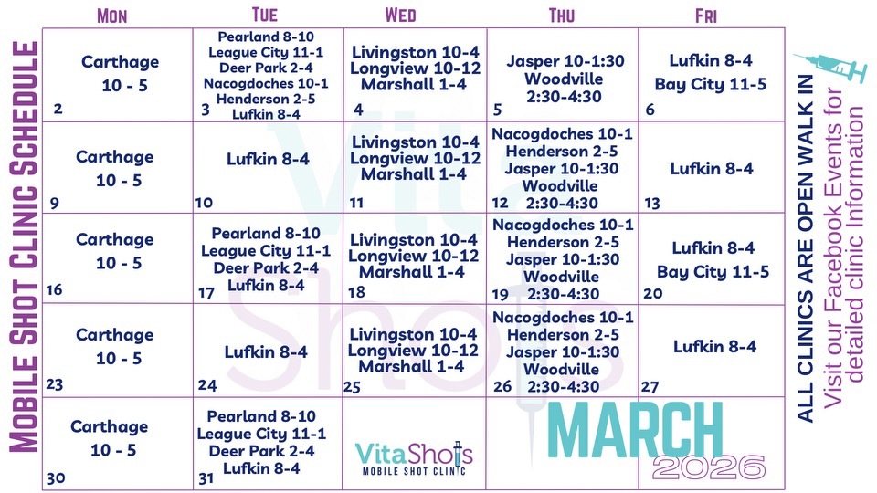 We are dedicated to expanding our reach and hope to serve more areas in the future. Stay tuned for updates on new locations served by VitaShots Mobile, and let us be a part of your health and wellness journey.